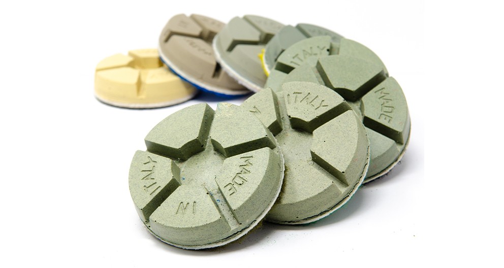 Condor Green are the perfect combination of resin with abrasive powders and superior diamond powder. Specific formulations developed to optimize the polishing of different materials. The tooling design with straight edges makes them more aggressive and performing, the whole surface of the tool works on the floor. 100% effective structured abrasives from the beginning. The linear micro-structure defined in the upper part of the product, allows a perfect job from the beginning, no need to prepare or open the tool previously.