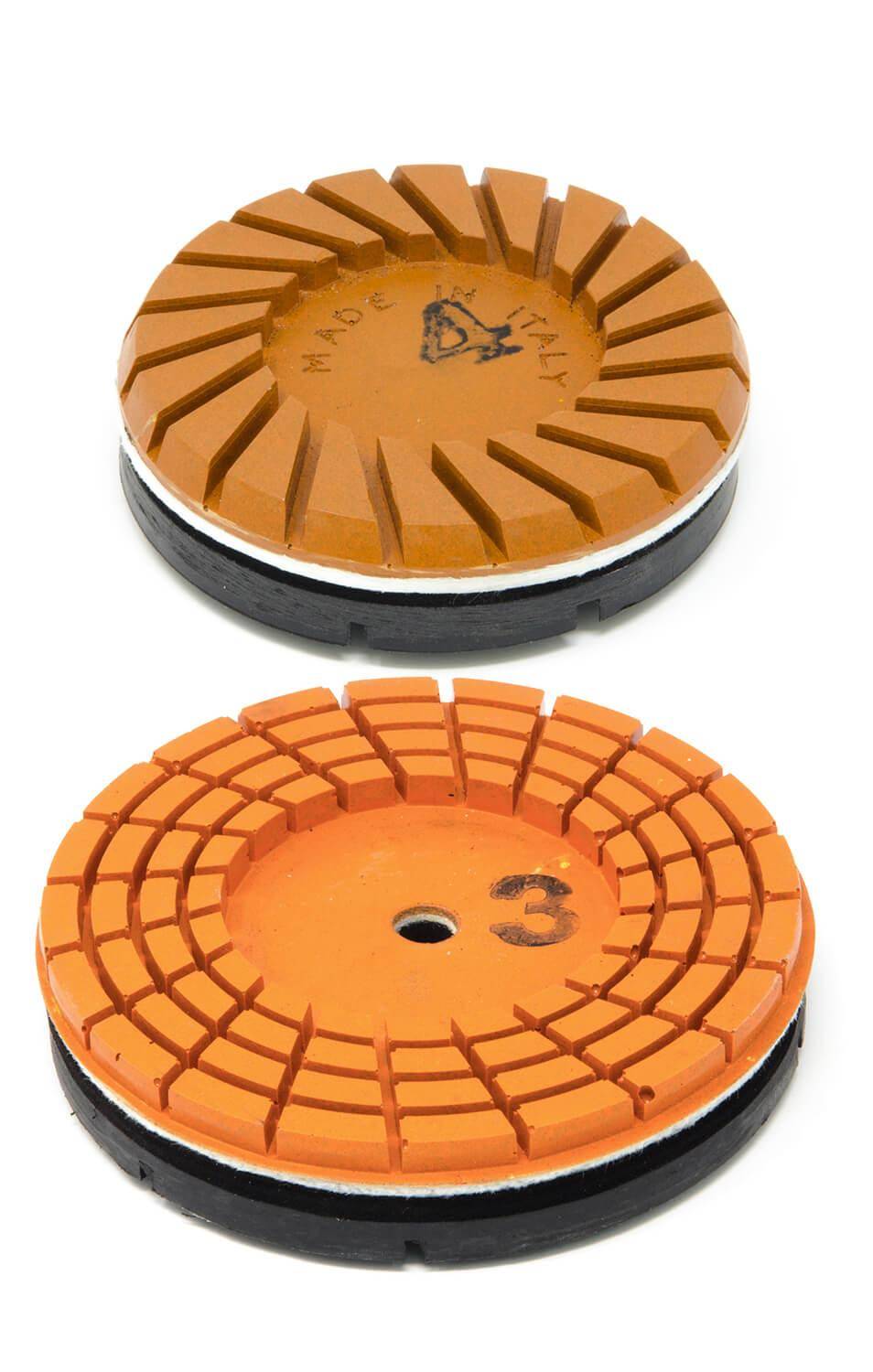 Metalbond Diamond abrasives for high performance to grind terrazzo, agglomerate, limestone, travertine and abrasive floors. Can be used dry or with water.